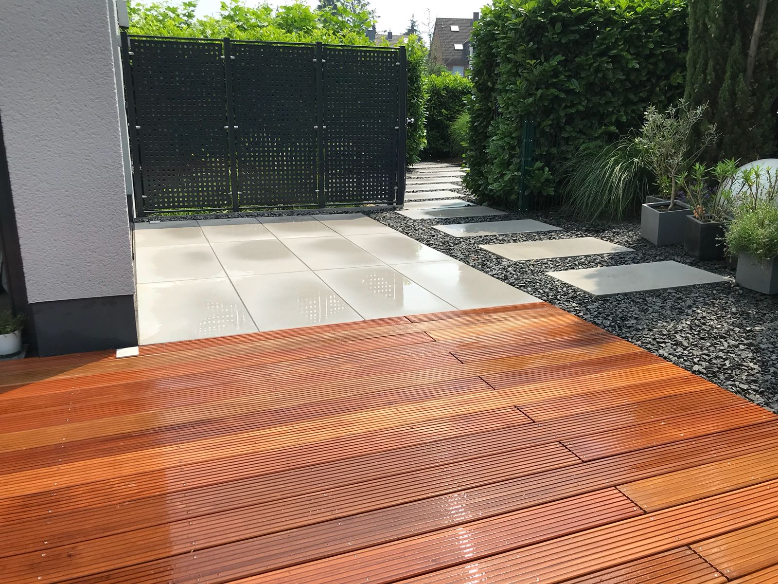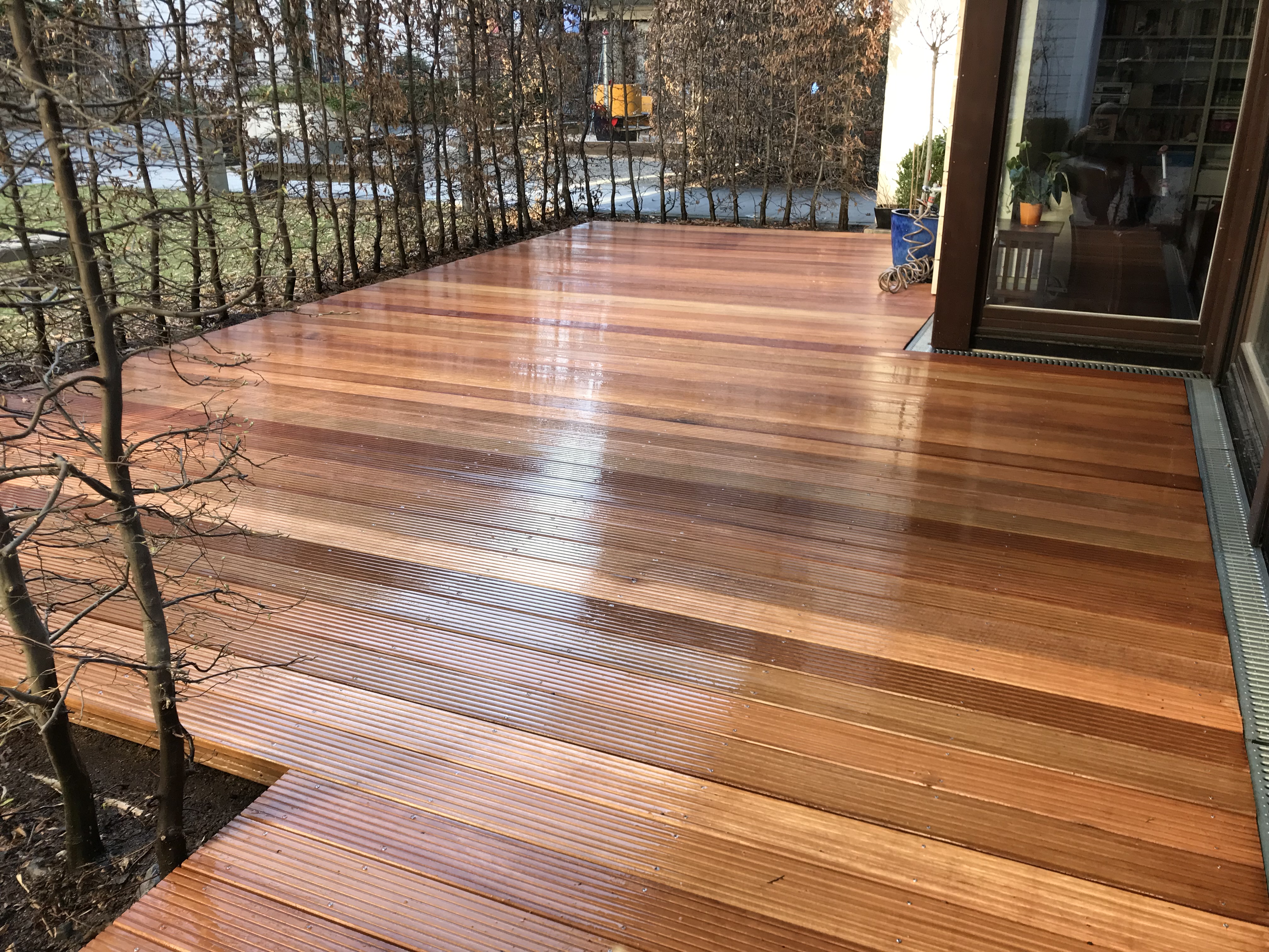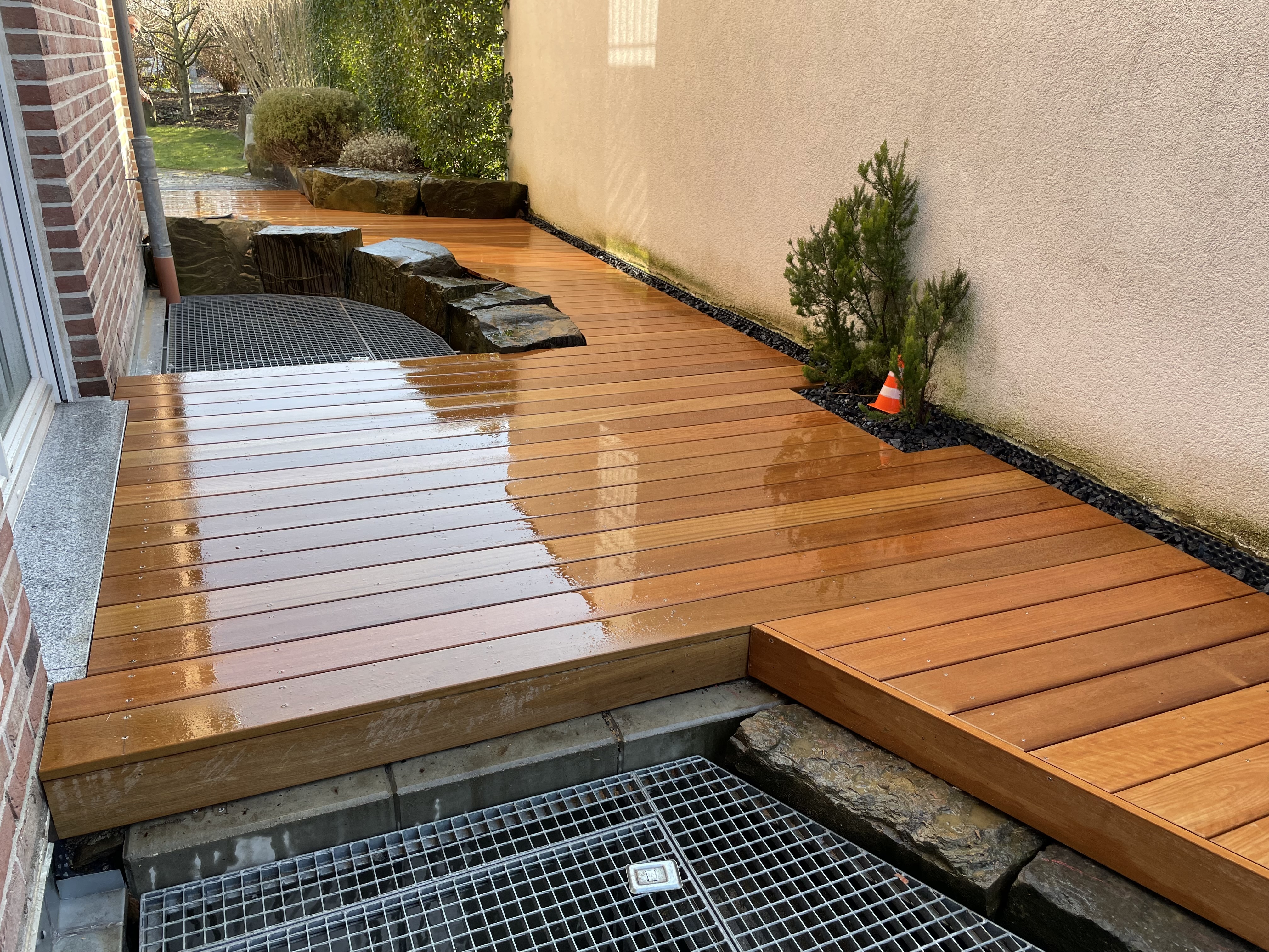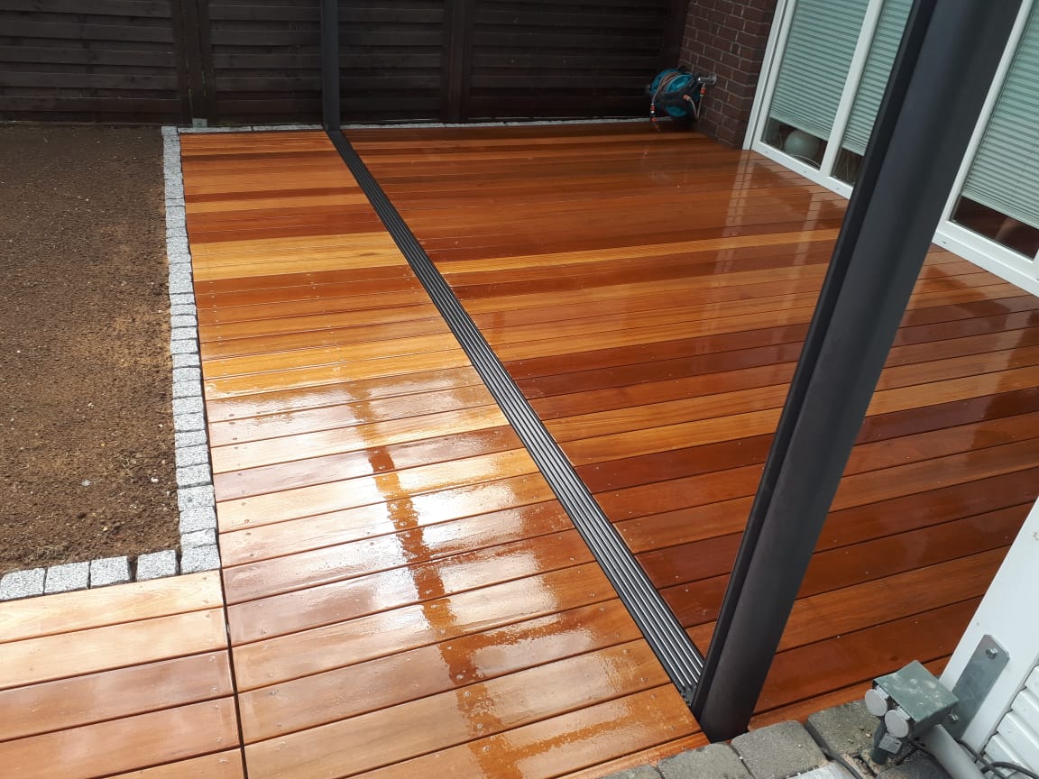 Holz passt im Garten perfekt zu Pflanzen – natürlich, warm und barfußfreundlich. Für Terrassen kommen heimische Hölzer und Tropenhölzer in vielen Farbtönen und Texturen infrage. Wir beraten Sie zur passenden Holzart, zu Schutzanstrich oder naturbelassenem Einbau und verlegen fachgerecht, damit nichts reißt oder sich verzieht. Vor Ort in Hürth und Umgebung planen wir nach Wunsch; Material, Entsorgung und Termin übernehmen wir. Dazu erhalten Sie Pflegetipps und Hinweise zur richtigen Reinigung. Kleine Terrassen sind oft an einem Tag fertig.