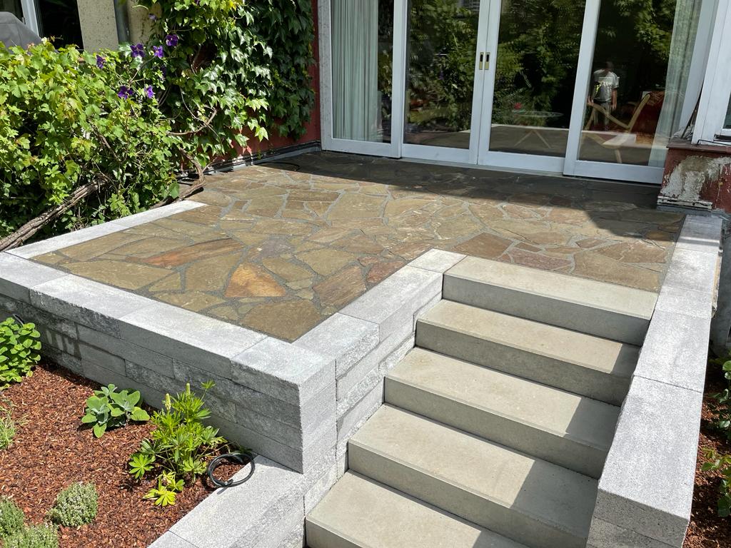 Natursteine sind als Terrassenbelag beliebt: hochwertig, robust, langlebig und pflegeleicht. Basalt, Quarz, Granit oder Sandstein unterscheiden sich in Farbe und Struktur. Verlegt wird als Platten, Polygonalplatten oder Würfelpflaster. Wir beraten zur passenden Auswahl und planen am liebsten nach Vor-Ort-Besichtigung in Köln und Umgebung; Sie erhalten ein unverbindliches Angebot. Unterbau, Bestellung und Verlegung übernehmen wir zuverlässig, schnell und sauber – danach ist die Terrasse sofort nutzbar.